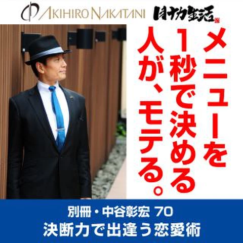 優柔不断な男性は、モテません。その人の人間性をめぐるさまざまな問題が、そこに表れているからです。 ○リスクを背負い込むのを恐れる臆病さ。○正しいかどうかにこだわる幼稚さ。○ともなう面倒を避けたがる怠惰さ。こんなところが「決められない」に如実に表れているのです。優柔不断は、とても深刻な病なのです。でも、ご安心ください。この決断力、練習すれば身につくのです。決断力の上達法、中谷さんから伺いました。●「見る眼は、外しながら学んでいこう。」●「ときめきを与えられる女性が、あげまん。」●「マッサージを覚えよう。」●「気持ちを未来に飛ばして、話をしよう。」●「1秒で選ぶうちに、選べるようになる。」他