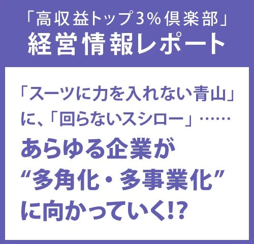 経営情報レポート 「スーツに力を入れない青山」に、「回らないスシロー」……あらゆる企業が“多角化・多事業化”に向かっていく!?