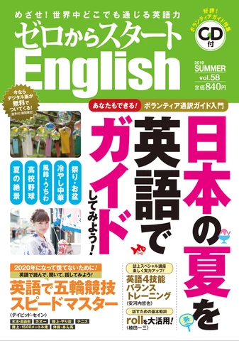 通訳案内のプロ・上田敏子先生の大人気企画「あなたもできるボランティア通訳ガイド入門」は、日本の“夏”がテーマ。訪日観光客にぜひおすすめしたい夏の味覚や楽しいイベント、トラブル対処や俳句の季語、通訳案内士試験にチャレンジするコーナーなど、実に幅広く網羅しており、さまざまな角度で日本の「夏」について英語で言えるようになります。