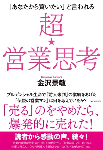 本書では、金沢氏が実体験のなかから掴み取ってきた、圧倒的な成績をあげる「超★営業思考」のすべてを公開するものです。やっていること自体は、まったく特殊なことではありません。誰にでもできることを、コツコツとやり続けていただけです。しかし、その「行動」の背後にある「思考法」を磨き続けたことで、誰もが到達できなかった画期的な「営業スタイル」を生み出すに至ったのです。