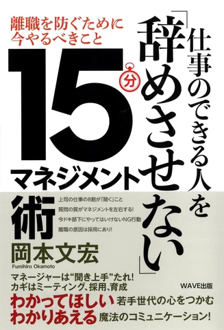 ・問題を解決する方法論として、本書は人材マネジメントを「15分」で完結させることを前提にした実践法を提案する。離職防止と人材育成には、「対話、質問、個別ミーティング、任せる、教育」が不可欠。とはいえ、忙しい日常ですべてを徹底させるには膨大なエネルギーが必要に思える。だが、必要なのは量ではなく、短時間で実行する実践的なマネジメント。そのキーワードこそ、「15分」なのである。