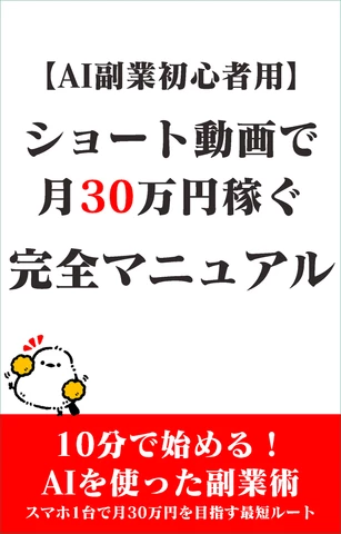 たった10分の作業で、AIを使ってショート動画を量産し、月に30万円の副収入を狙いませんか?この本では、初心者でも簡単にできる動画作成の手順を、具体的なAIツールを使って解説。スマホ1台でスタートできるから、難しい操作や特別なスキルは一切不要です。忙しいあなたでもスキマ時間で続けられる、最も効率的な副業法を今すぐ実践してみましょう!